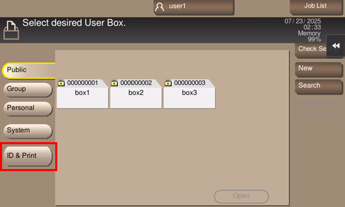 Para configurar una tecla de acceso directo del modo de carpeta de usuario, seleccione [Utilidad] - [Utilidad] - [Personalizar] - [Configuración de carpeta de usuario] y ajuste [Tecla de acceso directo 1] o [Tecla de acceso directo 2]. A continuación, seleccione la configuración que desea visualizar como tecla de acceso directo.