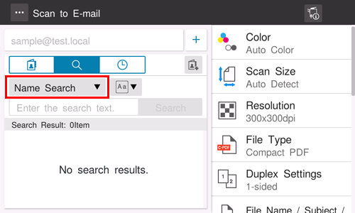 Escanear > Envío de datos del original como adjunto al e‑mail (Escanear a e‑mail) > Procedimiento para usar Escanear a correo electrónico > Especificar un destino