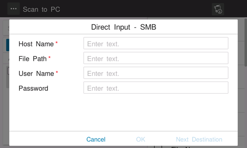 Para obtener más información, consulte los ajustes de [Entrada directa - SMB] (descritos después de este procedimiento).