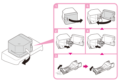 Inicio > Resolución de problemas > Si se produce un atasco de papel o grapas > Si se produce un atasco de grapas > Atasco de grapas en la Unidad de acabado FS-P04