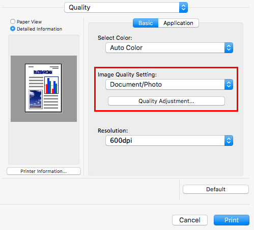 Wählen Sie unter [Image Quality Setting:] auf der Registerkarte [Quality] den für das Original passenden Bildeinstellungsmodus aus.