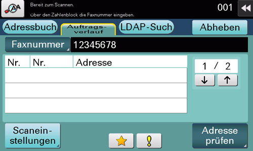 Mit [Adressbuch] wird eine Liste der auf diesem System registrierten Ziele angezeigt. Wählen Sie das gewünschte Ziel aus den auf diesem System registrierten Zielen aus.