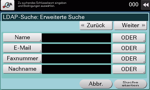 Tippen Sie auf [LDAP-Suche] - [Suchen] oder [Erweiterte Suche].