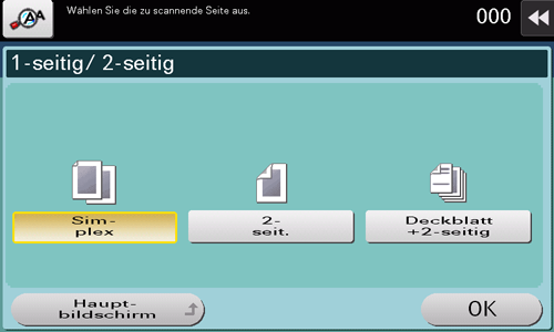 Tippen Sie auf [Scaneinstellungen] - [1-seitig/2-seitig].