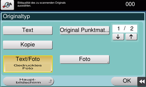 Tippen Sie auf [Scaneinstellungen] - [Originaltyp].