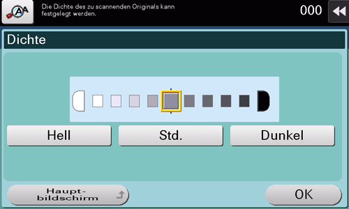 Tippen Sie auf [Scaneinstellungen] - [Dichte], um die Bilddichte zum Scannen des Originals anzupassen.