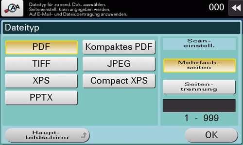 Tippen Sie auf [Scaneinstellungen] - [Dateityp].