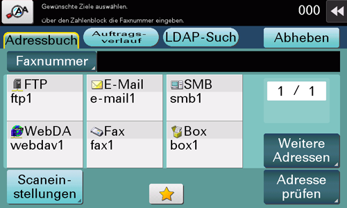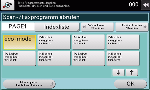 Das Scan-/Fax-Programm muss vorab im normalen Bildschirm registriert werden. Ausführliche Informationen zum Registrierungsvorgang finden Sie [Scan-/Fax-Programm registrieren] .