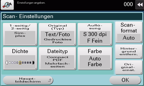 Ausführliche Informationen zu den Optionseinstellungen finden Sie [Optionseinstellungen für Scan-/Faxübertragungen] .Verwenden Sie die Start-Taste, um die Übertragung zu starten.