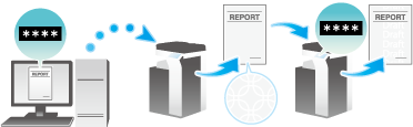 Die Kennwortkopie ist eine Kopierschutzfunktion, mit der verborgene Sicherheitswasserzeichen (z.B. "Privat") oder ein Datum im Hintergrund gedruckt werden, um die Anfertigung von unautorisierten Kopien zu verhindern. Zudem wird auf allen gedruckten Seiten ein Kennwort für die Kennwortkopie-Funktion eingebettet. Wenn auf einem Gerät, das die Kennwortkopie-Funktion unterstützt, ein Blatt mit eingebettetem Kennwort kopiert wird, wird das Muster für die Kennwortkopie gescannt. Anschließend wird der Benutzer zur Eingabe eines Kennworts aufgefordert. Wenn das korrekte Kennwort eingegeben wird, wird der Kopiervorgang gestartet. Für die Verwendung dieser Funktion wird das optionale Sicherheits-Kit benötigt.