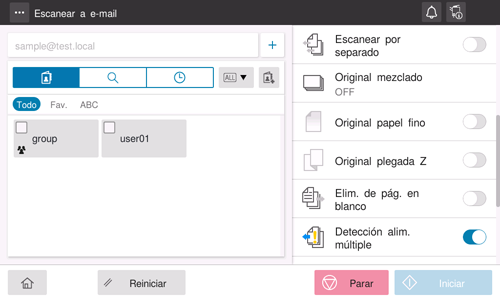 [De] | Permite cambiar la dirección de correo electrónico del remitente. En circunstancias normales, la dirección de correo electrónico del administrador se utiliza como dirección de correo electrónico del remitente. Si la autenticación de usuario está instalada en la máquina, la dirección de correo electrónico del usuario que ha iniciado sesión se utiliza como dirección de correo electrónico del remitente. |