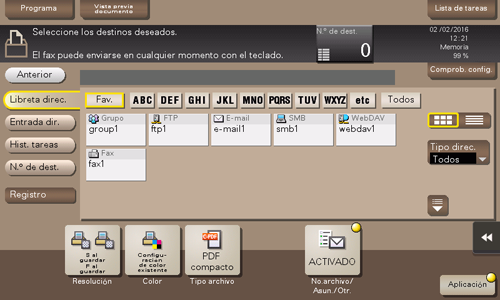 En este ejemplo, se utiliza la carpeta de usuario pública para fines explicativos. Para utilizar una carpeta de usuario personal o una carpeta de usuario de grupo, toque [Privada] o [Grupo] y seleccione la carpeta de usuario deseada.