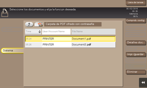 Una vez completada la impresión o el guardado, el archivo se elimina automáticamente de la carpeta de usuario de PDF cifrado con contraseña.