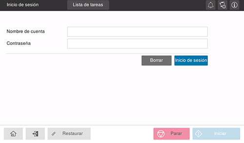 El contenido de la pantalla de inicio de sesión puede variar en función de la configuración de autenticación de la máquina.