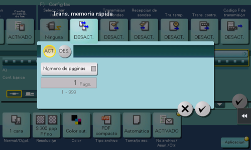 [ON]/[DESACT] | Seleccione [ON] para especificar Transmisión memoria rápida. |