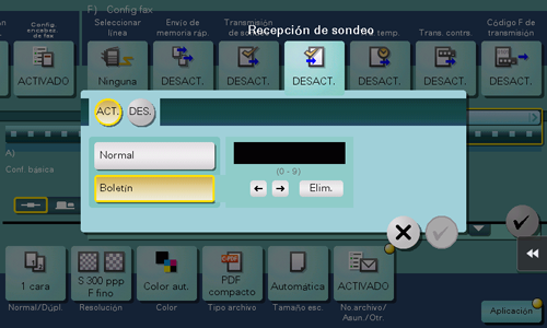 [ON]/[DESACT] | Seleccione [ON] para especificar Recepción de sondeo. |