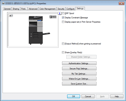 [EMF Spool] | Aktivieren Sie dieses Kontrollkästchen, wenn eine Metadatei (EMF) zur Verwendung in Ihrer eigenen Systemumgebung gespoolt werden muss. |