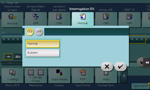 Tapez sur [Application] - [Régl. fax] - [Interrogation RX], puis tapez sur [OUI].