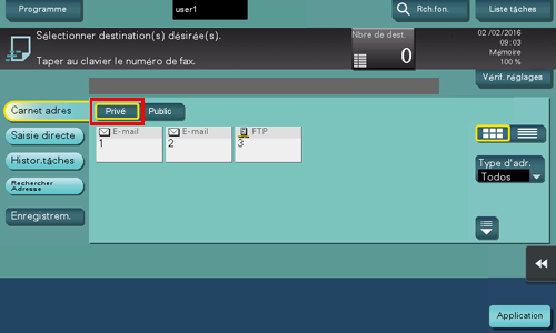 Tapez sur [Carnet adres] - [Privé] et sélectionnez l'une des destinations enregistrées dans Mon adresse.