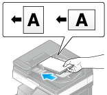 Chargez l'original de manière à ce que le côté supérieur soit derrière. Lorsque vous effectuez le chargement dans un sens différent, assurez-vous de spécifier le sens de chargement des originaux.