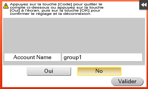 Si Identification utilisateur et Compte Département sont installés sans être synchronisés, Compte Département est requis après cette opération. Pour des détails, voir [Procédure de Compte Département] .