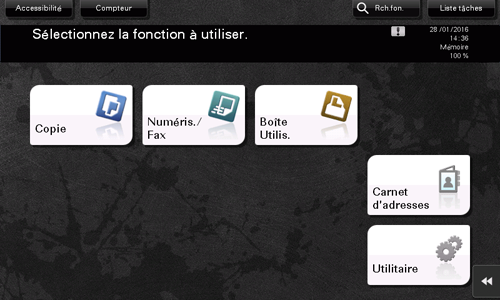 [Accessibilité] est disponible lors de la configuration de l'environnement d'exploitation du panneau de contrôle, p. ex. pour ajuster une position de tapement de l'écran tactile ou pour changer le son des touches.