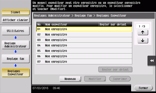 Sélectionnez [Réglage fax] - [Informations En-tête] - [Expéditeur].