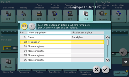 Sélectionnez un nom d'expéditeur à imprimer sur le fax et tapez sur [OK].