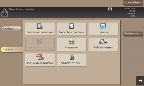 Sélectionnez [Réglage fax] - [Réglage Fonction] - [Réglage Réception Mémoire].