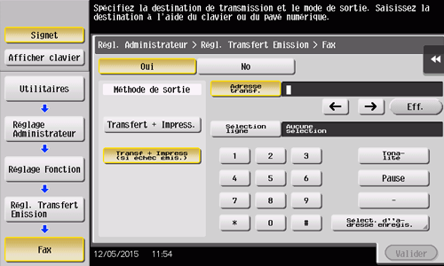 Sélectionnez [Réglage fax] - [Réglage Fonction] - [Régl. Transfert Émission].
