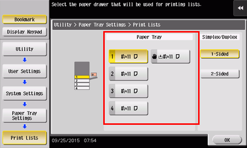 Sélectionnez [Réglage Système] - [Réglage Magasin] - [Impression Listes].