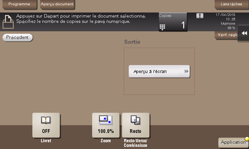 Appuyez sur la touche Départ pour commencer à imprimer/envoyer/enregistrer le fichier.