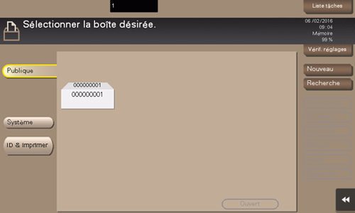 Sélectionnez [Paramètres affichage perso] - [Réglages boîte] et ensuite [Touche raccourci 1] ou [Touche raccourci 2].