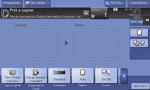 La touche de raccourci apparaît sur l'écran principal du mode copie.