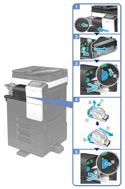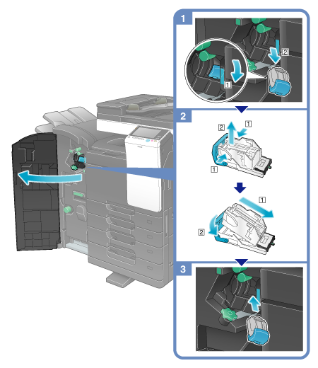 Be sure to replace the Staple Cartridge after the relevant message has appeared. If a Staple Cartridge is removed before the relevant message appears, it may result in a failure.