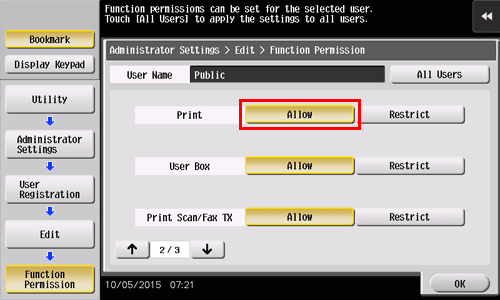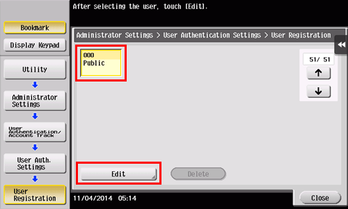 Select [User Authentication/Account Track] - [User Authentication Settings] - [User Registration].