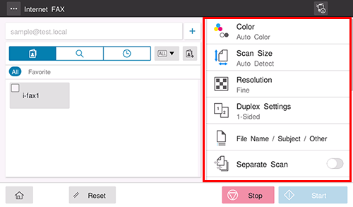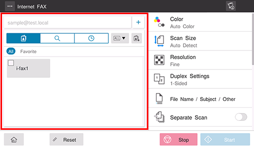 Il tasto stop consente di arrestare la scansione dell'originale. È visualizzata una lista dei lavori fermati al momento. Per arrestare la trasmissione, selezionare il lavoro di destinazione dalla lista, ed eliminarlo.