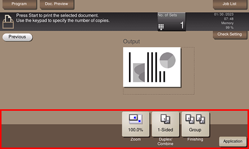 Si une image de sortie ne peut pas être affichée, [Aperçu à l'écran] s'affiche. Pour vérifier une image de sortie, appuyez sur [Aperçu à l'écran], et confirmez l'image de sortie cible sur l'écran d'aperçu.