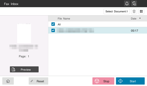 Le fax est supprimé de la boîte de réception des fax.