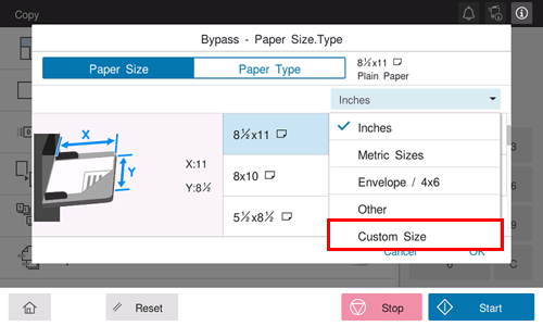Cette section explique la procédure de chargement de papier de format personnalisé dans l'Introducteur manuel.