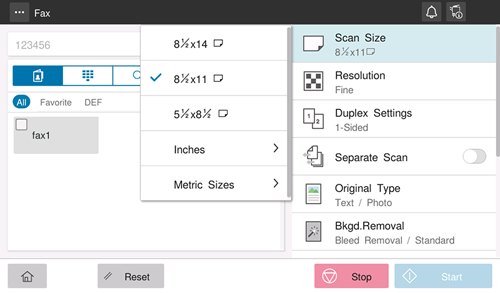 Fax > Modalités d'envoi de fax > Configuration des options de transmission > Réglages Numérisation de documents