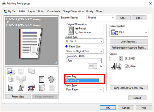 Accueil > Imprimer > Impression dans l'environnement Windows > Options d'impression > Impression de la couverture et du chapitre uniquement sur un autre type de papier