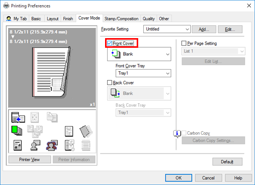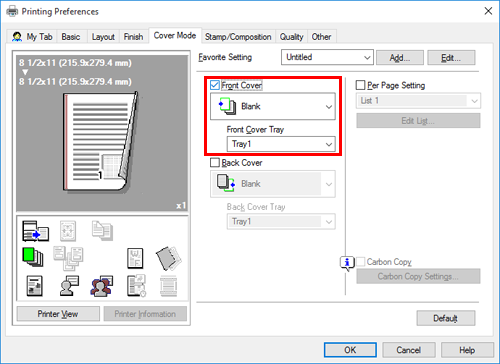 Pour imprimer la couverture sur un autre type de papier, cochez la case [Couverture] dans l'onglet [Mode Couverture].