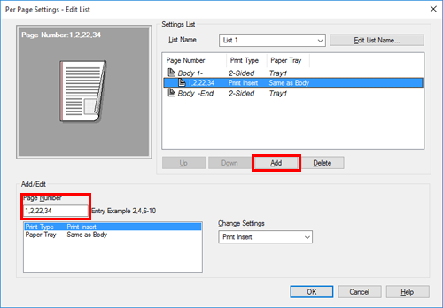 Cliquez sur [Ajouter] et saisissez le(s) numéro(s) de page(s) de couverture des chapitres dans [Numéro de page].