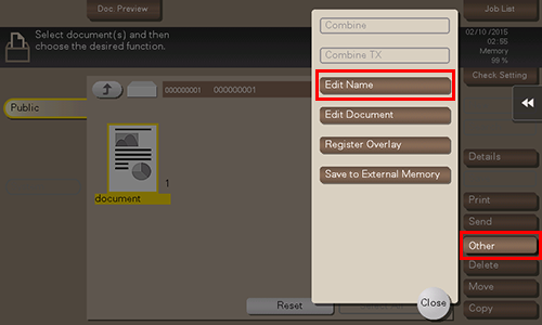 Sélectionnez un fichier à renommer, appuyez sur [Autre], puis sur [Modif. nom].