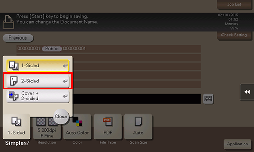 Appuyez sur [Recto/Recto-Vers] dans les réglages de sauvegarde, puis sur [Recto-verso].