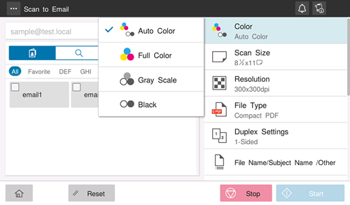 [Polychrome] | Numérise en couleurs, que l'original soit en couleur ou en noir et blanc. Sélectionnez cette option pour numériser les originaux autres que noir et blanc et numériser des photos en couleur. |