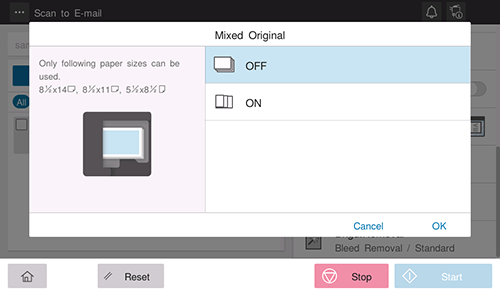 [Papier copié] | Numérise un original de densité homogène imprimé par le copieur ou l'imprimante à un niveau de qualité d'image optimal. |