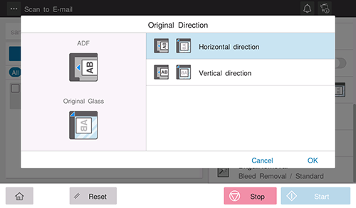 [Sens original] | Spécifiez l'orientation de chargement de l'original. |