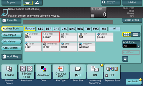 Le cas échéant, appuyez sur [Vérif. réglages] avant la transmission et vérifiez la destination spécifiée ainsi que les réglages.